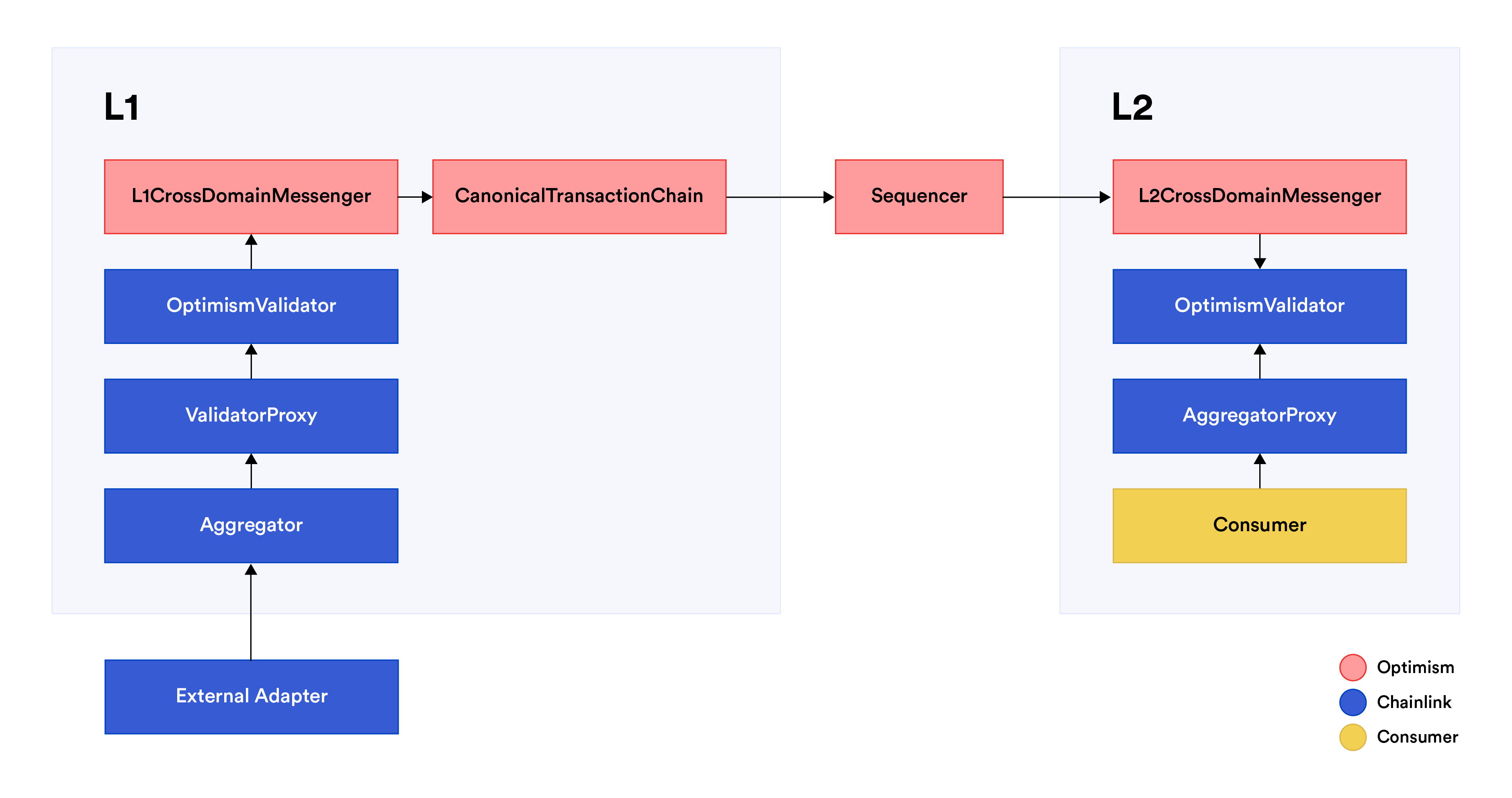 contract and updates the latest sequencer status to 0 if the sequencer is up and 1 if it is down. It also records the block timestamp to indicate when the message was sent from the L1 network. - A consumer contract on the L2 network can read these values from the