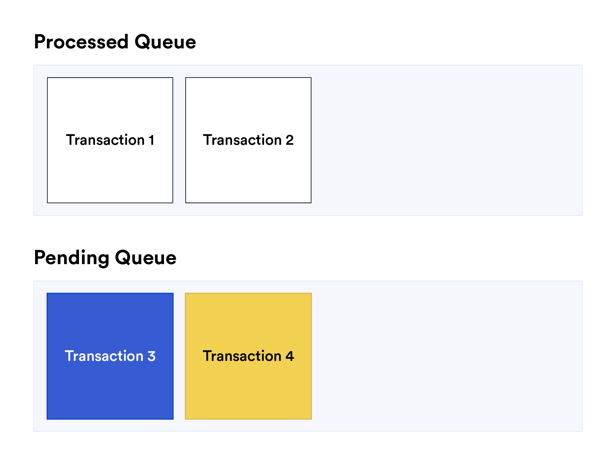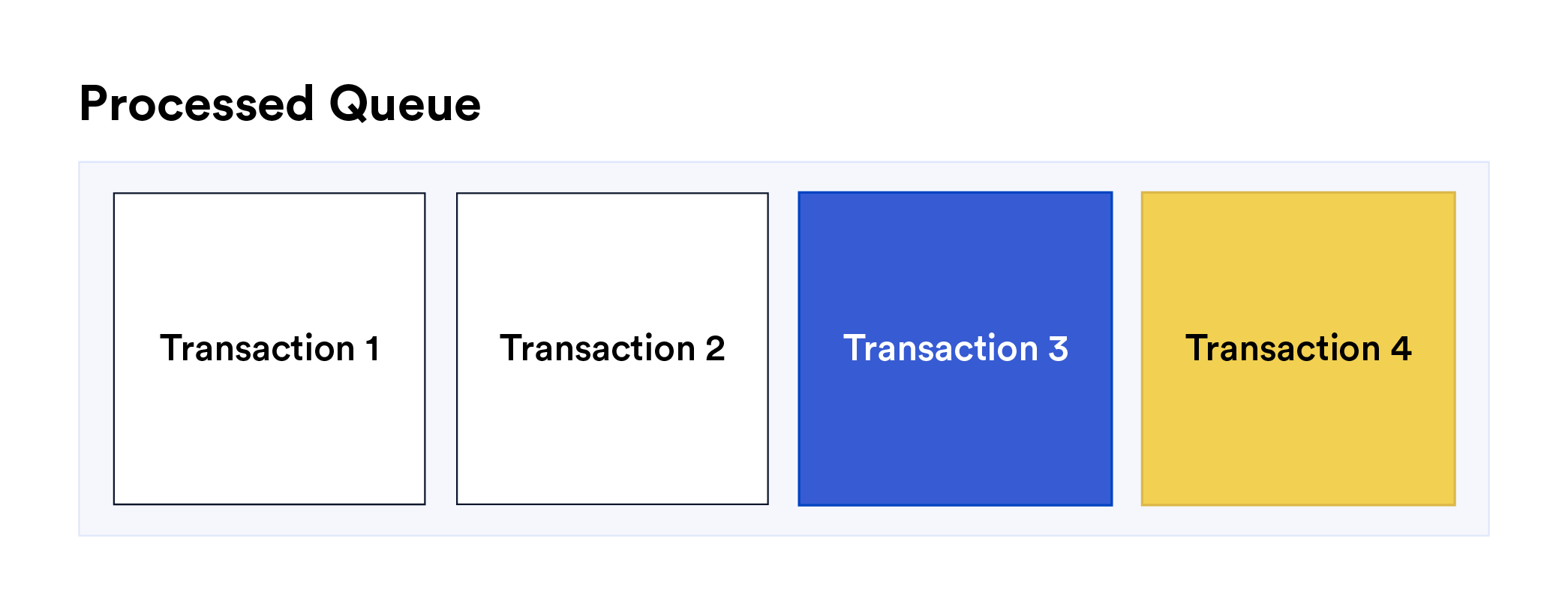- Transactions are processed in the order they arrived so Transaction 3 is processed before Transaction 4.